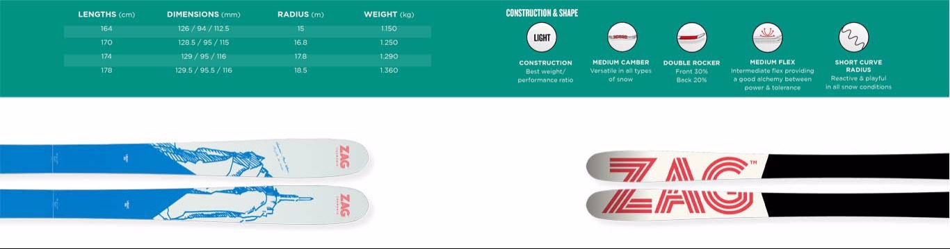 Homologué par les guides de Chamonix, l'UBAC-95 est un incontournable du ski de randonnée ! L'UBAC-95 est le résultat d'un long travail dans notre ZAG Lab, il est relativement rigide en torsion ce qui apporte stabilité et performance en toutes neiges. Son excellente skiabilité s'explique par son shape en 5 points et son rayon court. L'un des meilleurs rapports poids/performance de la catégorie. Une édition anniversaire pour célébrer les 20 ans de la marque. L'Aiguille du Midi en arrière-plan, incontournable de la vallée de Chamonix, illustre parfaitement le terrain de jeu où tous les skis développés au sein du ZAGLab sont testés et éprouvés.