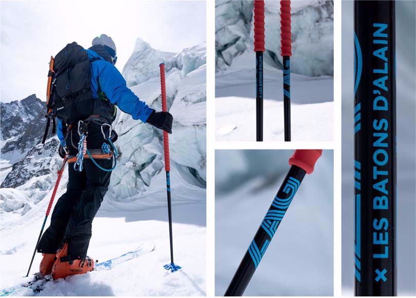 Un pôle « anniversaire » a été développé spécifiquement pour les 20 ans de ZAG. Les bâtons d'Alain sont désormais célèbres dans la vallée de Chamonix ! Alain Desez, guide de la vallée, a conçu les bâtons reconnaissables au premier coup d'œil. Un brin unique avec une longue prise qui permet une prise optimale. Un tube en aluminium et une longue mousse EVA assurent légèreté, solidité et confort optimal.