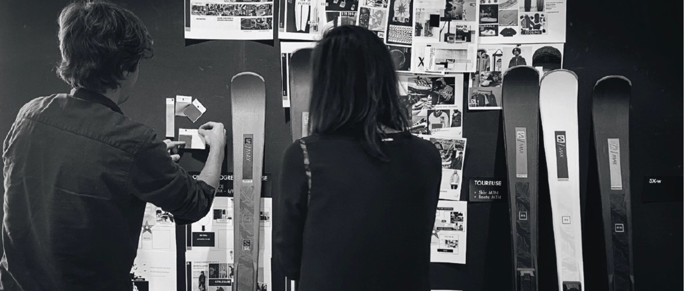 Au commencement de cette histoire, il y a eu cette inspiration venue de l’univers de la danse, incarnée par une référence forte et bouleversante : the BLACK SWAN de Darren Aronofsky. Ce personage unique à la fois puissant dans la performance physique contraste avec l’élégance de la danse. Pour interpreter cette dualité, nous avons emprunté aux codes de l’univers du packaging de luxe, le raffinement et l’élégance à la française et l’avons associé au caractère sportif du ski. Nous avons voulu cette création avec une signature Salomon forte, emprunte d’histoire et de modernité.
