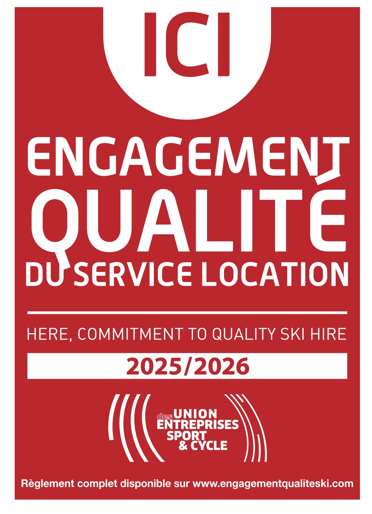 Pour leur permettre de choisir un professionnel en toute confiance, une vignette millésimée du label « engagement qualité de service location » est désormais visible en vitrine des 1 200 magasins spécialisés dans la location de matériel de sports d'hiver membres de l'UNION sport & cycle.